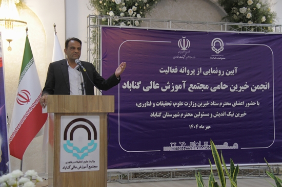 قدردانی فرماندار گناباد از خیرین و تاکید بر توسعه شهرستان دکتر محمد زارعی هدک، فرماندار گـــناباد، در آیین رونمایی از پروانه فعالیت انجمن خیرین حامی مجتمع آموزش عالی گناباد، با قدردانی از نقش خیرین در توسعه علمی، فرهنگی و اجتماعی شهرستان، حمایت آنان در مدرسه‌سازی، ایجاد خوابگاه‌های دانشجویی و توسعه امکانات آموزشی و ورزشی را موثر و راهگشا دانست. وی بر ضرورت تعامل سازنده دولت، دانشگاه و خیرین برای تحقق پروژه‌های بزرگ و ارتقای رفاه مردم تاکید کرد و ابراز امیدواری نمود که این همکاری‌ها زمینه رشد پایدار و پیشرفت‌های چشمگیر شهرستان را فراهم کند.