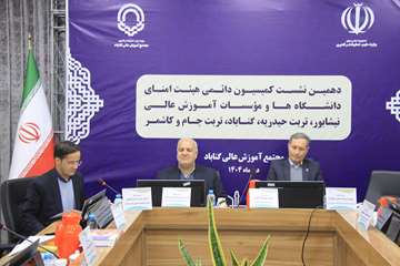 پس از هماهنگی های به عمل آمده، مجتمع آموزش عالی گناباد در روز دوشنبه ۸ دی ماه میزبان دهمین نشست کمیسیون دائمی هیات امنای دانشگاه های نیشابور، تربت حیدریه، گناباد، تربت جام و کاشمر به ریاست دکتر محمد کافی، استاد دانشگاه فردوسی مشهد بود. دکتر یاسر اسماعیلیان، رئیس دانشگاه گناباد در ابتدای این نشست، با ارائه گزارشی از روند رشد و توسعه دانشگاه، به تشریح عملکرد دانشگاه و کسب شاخص های مهم در حوزه های عمرانی، آموزشی، پژوهشی، دانشجویی و فرهنگی پرداخت.