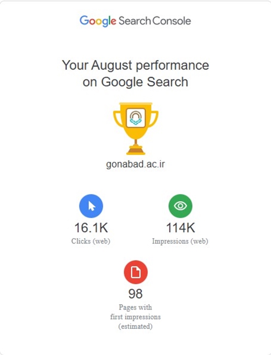 سایت دانشگاه گناباد در مردادماه با دریافت ۱۶,۱۰۰ کلیک و ۱۱۴,۰۰۰ نمایش در گوگل، رشد چشمگیری را تجربه کرد. صفحه اصلی دانشگاه با ۸,۰۶۰ کلیک پربازدیدترین صفحه بود و محتوای آموزشی مانند جزوه اخلاق حرفهای با رشد ۱۸۵ درصدی مواجه شد. بیش از ۹۰٪ بازدیدها از طریق موبایل انجام شده که اهمیت بهینهسازی برای این دستگاه را نشان میدهد.