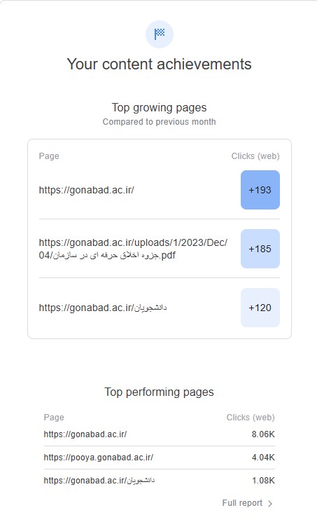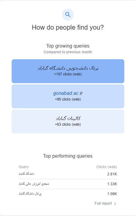 گزارش عملکرد سایت دانشگاه گناباد در موتور جستجوی گوگل (مرداد ماه ۱۴۰۳)