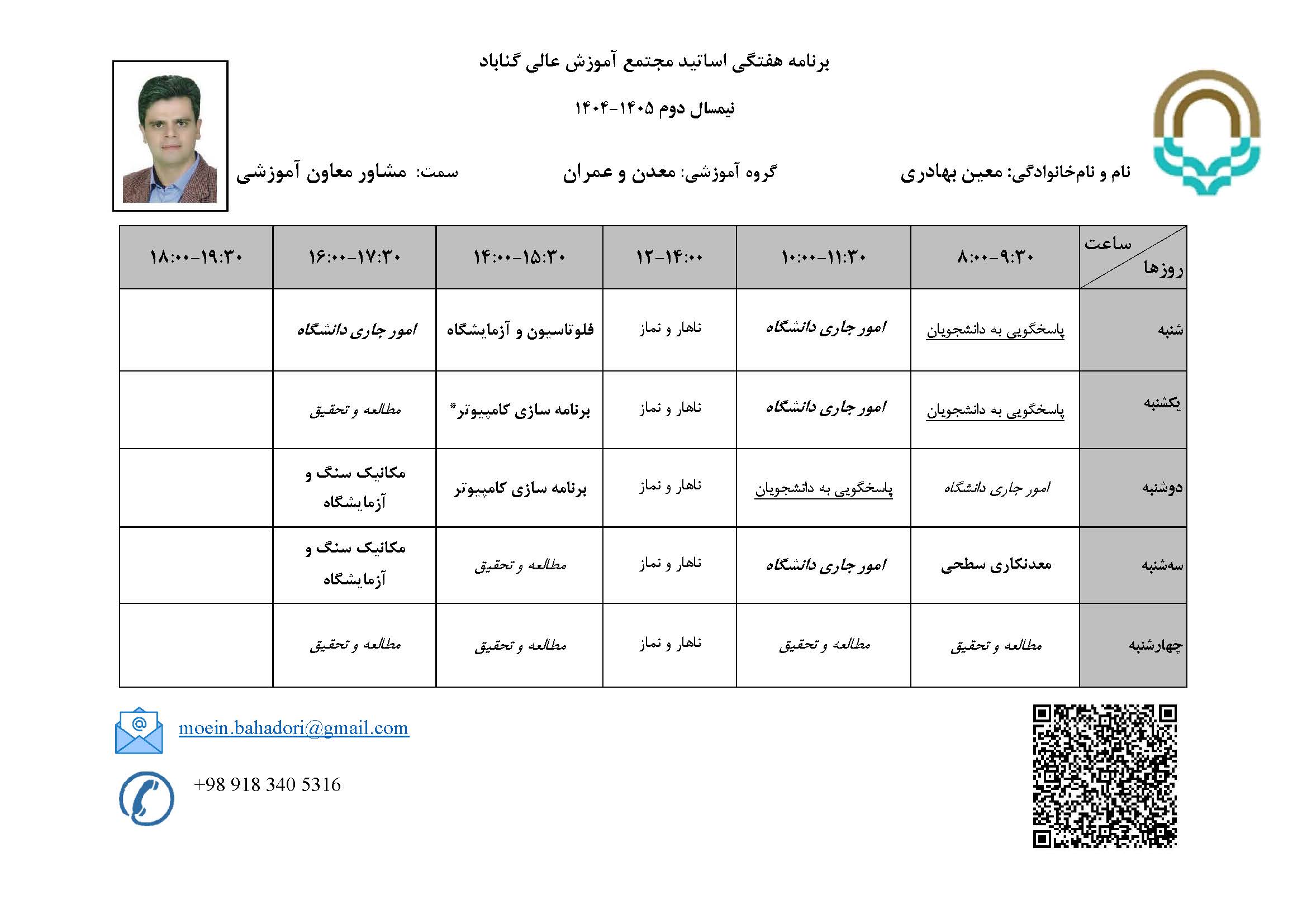 - مشاور معاون آموزشی، پژوهشی و دانشجویی دانشگاه گناباد از سال 1404 ادامه دارد