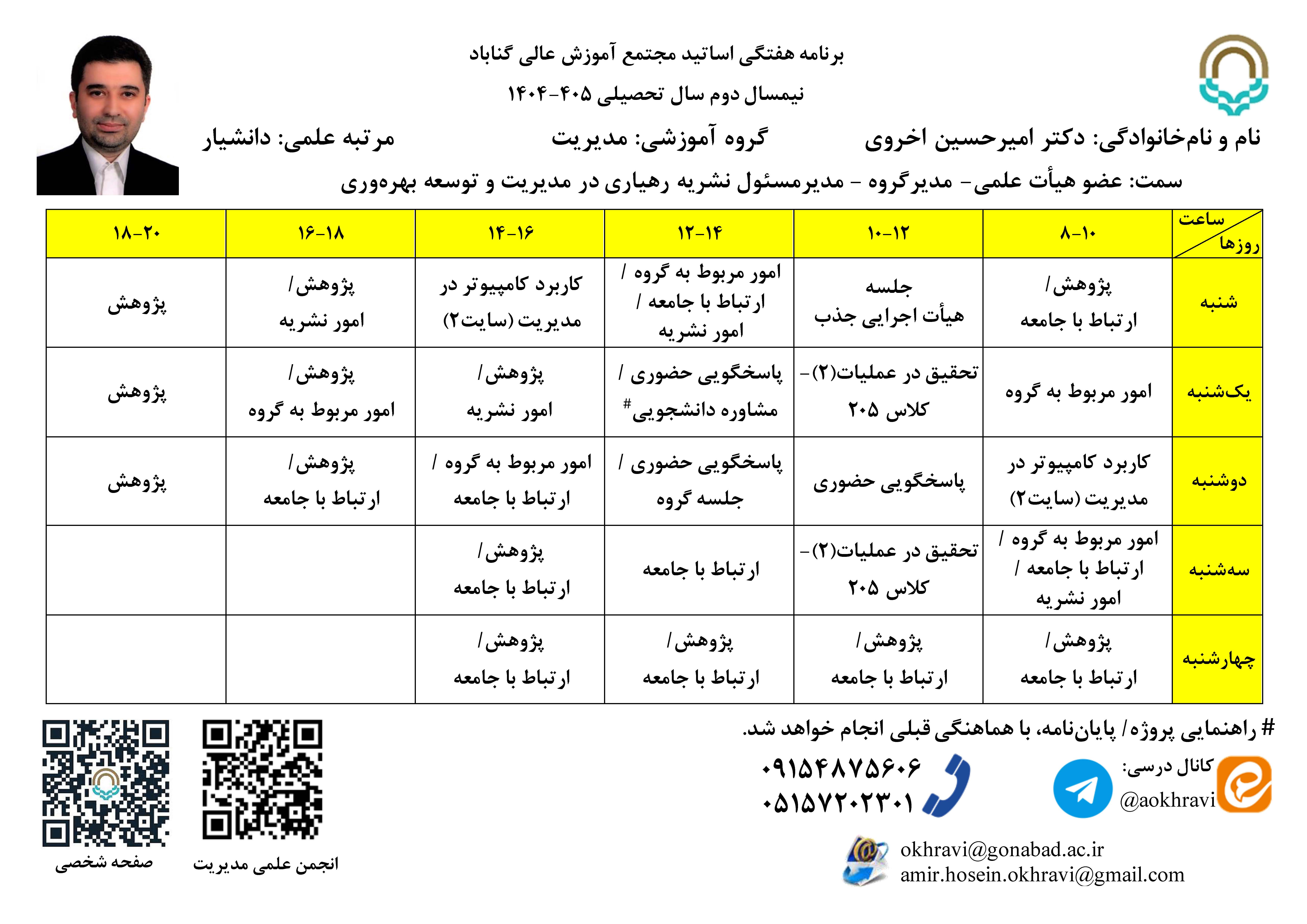 - برگزاری دوره آموزشی آشنایی با مدل تعالی سازمانی ملی مبتنی بر EFQM در انجمن علمی مدیریت، مجتمع آموزش عالی گناباد