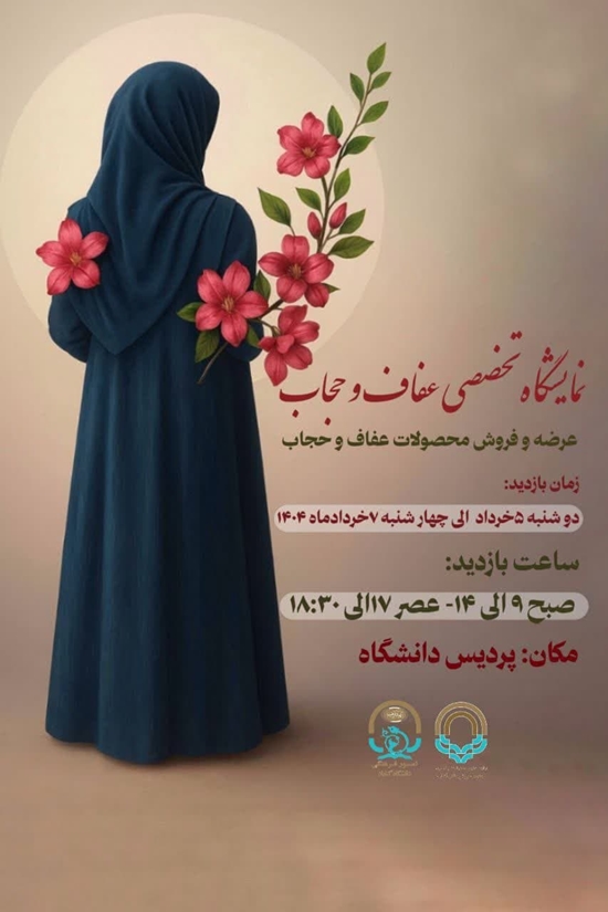 عرضه و فروش چادر و ملزومات حجاب(مانتو و شلوار اداری و دانشجویی، مقنعه، روسری و...) زمان برگزاری: دوشنبه ۵ خرداد تا چهارشنبه ۷خرداد ماه ۱۴۰۴ ساعت بازدید صبح ۹ تا ۱۴- عصر ۱۷ تا ۱۸:۳۰ مکان: پردیس دانشگاه-سایت۱ بن خرید ملزومات حجاب برای دانشجویان ����ظرفیت محدود امور فرهنگی دانشگاه گــناباد